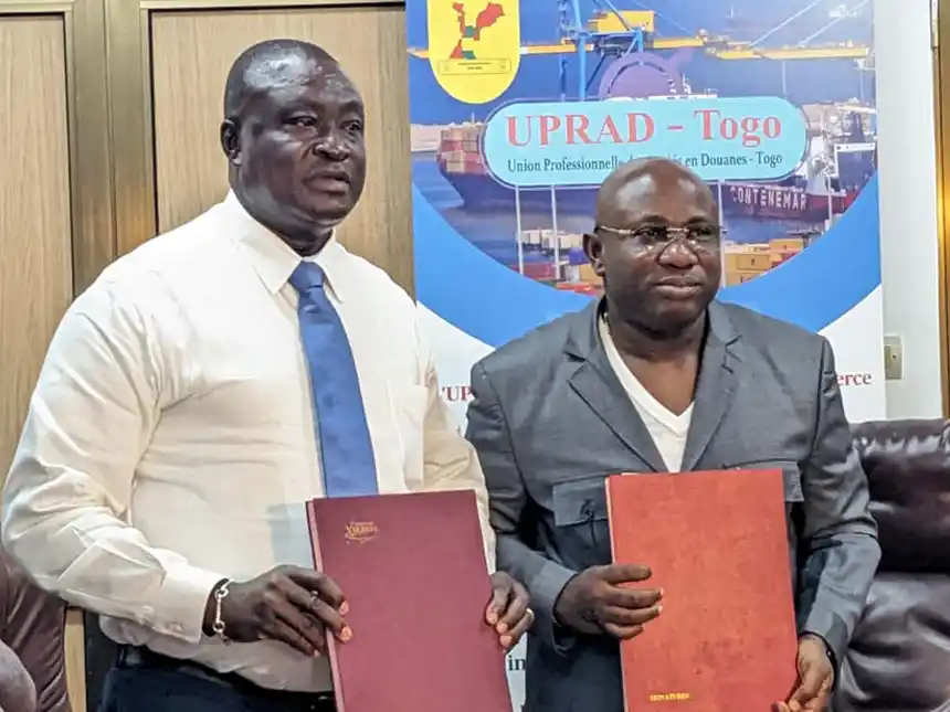 L’Union Professionnelle des Agréés en Douane du Togo (UPRAD-Togo) et l’Institut ghanéen des commissionnaires en douane et transport (GIFF) ont conclu lundi à Lomé un protocole d’accord. Ce partenariat, scellé respectivement par les présidents Patrick Magnon et Stephen Adzorkatse, vise à renforcer la coopération transfrontalière, faciliter les échanges commerciaux et promouvoir un développement harmonieux du secteur.